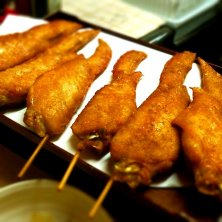 ミナミで人気の手羽先よっちゃん 出前から火がついたのですが、ハッピーパウダーたっぷりで美味しい。 味は塩コショウ、カレー、梅、青のりなど。 朝までやってて、飲兵衛達の憩いの場。
