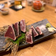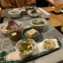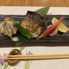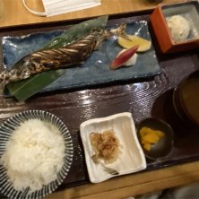 アジフライ定食 長崎県松浦産アジの大きさにびっくり。 一瞬食べられるかひるんだけど、薬味もたっぷりで飽きずに食べられた。お刺身もついて1650円。限定5食