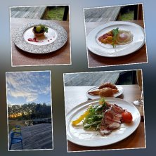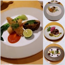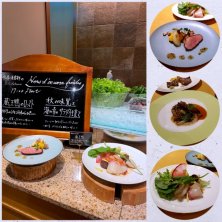 ・季節アミューズ ・蔵王鴨のロースト カボチャのシナモン風味のムース ・秋の味覚と海の幸のサラダ ・じゃが芋と南瓜の和牛そぼろ餡 温かいポテトサラダ ・ジャンボマッシュルームの香草焼き 海老のカダイフ ・きのことフカヒレのオイスター風味のブイヨンスープ さつま芋と栗のポタージュスープ ・お魚のポワレ マッシュルームソース ・シェフセレクトステーキ 子羊のポワレ ・帆立と秋香る野菜のピラフ ・仙台牛の炙り焼き 十六穀米 ・デザート2種 2023/11/03 夕食