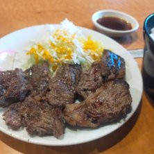 20170404名古屋栄ランチレポ 今日はディープディープな焼肉屋で トンテキランチ 130g¥890 何回行っても薄暗い店は どう見ても以前は場末のスナックかバーって感じ〜〜(⌒▽⌒) 若い女性は絶対に一人では入らないでください!(◎_◎;) 危険です〜〜笑笑 焼肉は美味い、 牛ヒレステーキ160g¥990もーー 一緒に行った後輩男子が食べました