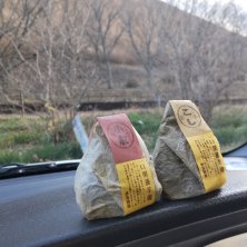 お正月のドライブ甘いもの 一口栗蒸し羊羮 (こし・小倉) いでゆ饅頭♨️完売😲 流石❗️😆 (お正月はかきいれ時らしい) 大室山は"柴犬の背"みたく茅がワサワサ。