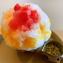 かき氷 沖縄パッションフルーツとローズヒップ with ヨーグルトスカッチクリーム