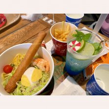 ゆず塩冷やし麺、ライムミントの炭酸 なぜかディズニーだけ炭酸解禁されているマイサン。微炭酸なので。。。笑 緩、、、 結構なボリュームです
