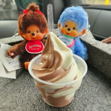 温泉の後の「ミックスソフト」あずきとバニラのハーフで250円!