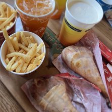 ワッフルサンド(スパイシーシュリンプ&アボカド) ホットジンジャーレモネード