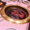 パフェもんじゃ、まさに焼き中w 何処かの惑星の表面みたいな様相ですがw 焼いてる最中はむせる位の甘い香りですが、甘さは割と控え目。焼きたてのケーキを食べてる感じでした。