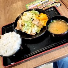 新潟 中央区 西区 仕事終わりの高速朝ご飯 豚キャベツ炒め定食(大) ¥1080+150 ご飯がマンガ盛り!普通でよかったかな? (;´д`)トホホ…