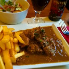 ブリュッセルで、牛肉のビール煮込み