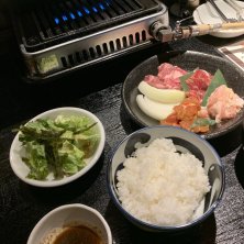 今日のランチは勤め先のご近所の焼肉屋さんで昼肉。 カルビ、能登豚バラ、辛味噌ハラミに サラダとドリンク、お味噌汁とおかわり自由の白ご飯で780円♪