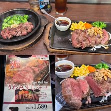 息子の学校の美術作品展覧会後‼️ 親子でいきなりステーキGO‼️ アメリカンサーロイン200g 来月に健康診断があるから控えたけど|( ̄3 ̄)| もう少し食べたいがブラックホールの胃になりかけているのよヽ( ̄д ̄;)ノ=3=3=3