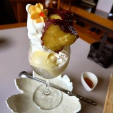 さつまいもパフェ🍠 上に乗っている3種類の焼き芋は どれも味が違って美味しかったですᵕ̈♩*̣̥