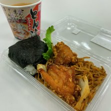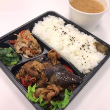 茄子の辛味噌炒め弁当でお昼ごはん( 'Θ')ノ☆ 今日は冷たい雨が降りつづきますね。弁当を買いに行くだけで凍えました(^^;;