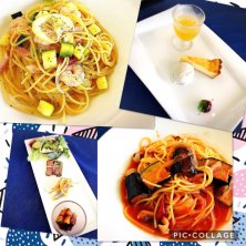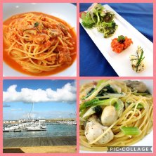 パスタランチ♡ いいお天気だったので、家中の物を洗濯して窓拭きもしてスーパーへ買い出しへ行って。 我ながら頑張ったぁ〜꒰*´∀`*꒱ 息子チャンと海でランチデートを満喫♪