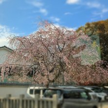 奈良は奈良公園脇の氷室神社の桜が有名。枝垂れ桜の巨木は去年倒れてしまったけど、その脇のこの傘のように広がる枝垂れ桜も好き。 ソメイヨシノは葉桜になりかけていますが、枝垂れ桜はこれからが盛りのようです!