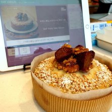 今月来月の1dayレッスンタブレット限定メニュー 「マロンのしっとりベイクケーキ」 マロンペーストと栗入りの生地の上に、カスタードクリームを乗せて、くるみと栗をトッピング。 しっとり生地おいしい。 9月末〜誕生日シーズンの我が家。第一弾は手作りで🎂