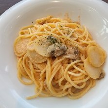 大行列の来宮神社で初詣をすまし、またもやランチジプシー^^;熱海まで戻るもどこも行列。 足の悪い義理両親をベンチに残し手分けして並んで一番早く空いたこちらのお店でやっとこパスタ。 二日ぶりの洋食にかぶりつく息子! もう次は旅行は勘弁だなぁ┈^^;