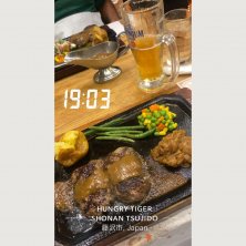 姪っ子がお盆で帰省中に皆でお約束のハングリータイガーへ。 今回は6月末に高校を無事に卒業した息子が彼女と一緒にタイ🇹🇭や関西を旅行してから私達の一時帰国に合わせて実家に来たので全員そろうと10人! どうやら酔っ払った姪っ子がハングリータイガーでは best hamburger steakが食べられるよ!と力説したらしく息子の彼女も美味しい!と言ってくれました。 息子はダブルバーガーをペロリと完食😳 今回も満足の美味しさ、ありがとうございます😊