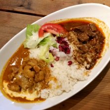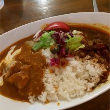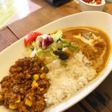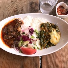今日は遅くなるので外飯♪♪ 自分のマンネリ手料理にも刺激になるしね なぜかこの辺りには新進カレー屋が多い なのでカレー激戦区に参戦! 2種類のカレーが選べるコンビネーション ビーフとほうれん草は夜のみらしいので もちろんチョイス♡♡ まだ仕事まで時間がある…カレーハシゴする?(笑)