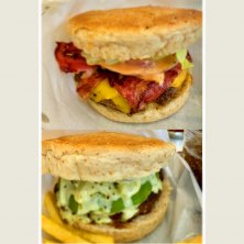 八重山旅行5日目 石垣島 夜ごはん・・・? 人気店で混むらしいから遅めのおやつくらいの時間に行ってきました 石垣牛ハンバーガーの人気店で モザレラチーズバーガー (入力ミスじゃなくてメニューがこの名前) 石垣牛のパテがどーんと2枚のガッツリハンバーガー 肉はしっかり美味しかった🥰 見た感じたっぷりなのにチーズ感は控えめかも💦