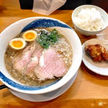 本日のラーメンランチ🍜 初出勤❣️人気店の「中華そば おしたに」さんへ✨ 特製煮干しそば+唐揚げご飯をセットで✋ スープは、数種類の煮干しに背脂醤油を合わせおり、コク・旨味抜群❗️ 麺は、卵不使用の特製自家製麺で、喉越し良く、スープに良く絡みます。 チャーシューに至っては、イタリア産長期熟成豚のドルチェポルコを低温調理と、とことん拘った一杯です。 久々に、勿体なく!一気食いしました👍😋