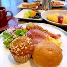 朝食☆ やっぱりホテルでの朝食は食べ過ぎちゃう💦 家では絶対にこんなには食べれないのに😅 でも調理も片付けもしなくて良いのは幸せ♡ 昨日は20000歩も歩いた割にはあまり足にも腰にも来てない😆
