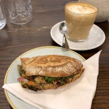 ヴィーガンサンドウィッチ🥪 トーストで マッシュルーム、ナスやオニオンのマリネなどのフィリング 美味しかったけどすぐお腹空いちゃった件 ⁽⁽٩(๑˃̶͈̀ ᗨ ˂̶͈́)۶⁾⁾
