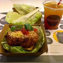 季節限定メニューのイタリアンバーガー \(◦´-`◦)/♡ ビーフパティ、ナス、モッツァレラ、パルメザンのフライ、バジル、トマトソース バーガーだけどバンズはやめて レタスでオーダーΣ(゚∀゚ノ)ノ