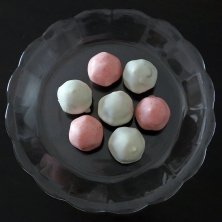 今日のデザートは、いちごの銀のすずとラムレーズンの銀のすず(^_^) いちごの銀のすずは、ミルク風味の白餡を苺の入ったチョコレートで包んでいます。ラムレーズンの銀のすずは、ラムレーズン入りの白餡をホワイトチョコで包んでいます。 和洋折中ですがうまくマッチングしていますよ(^-^)/
