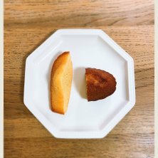 舌がゼロのうちのあさイチおやつ☆ 旦那さんとはんぶんこ。 フィナンシェ トースターでリベイクすると、また焼きたて復活!いい香り✨ ここのフィナンシェ本当に好き。···というかもう愛してる😵💕 外がカリとサクの間。中はふわっとバターがジュワ🥳でもしつこ過ぎないバター具合と甘さ。 マドレーヌ 断面みっちり。そのままだとレモン🍋の酸味がキュッと美味しい。1/4は少し温めて。今度はバターが際立って違う風味で2度美味しい🥰 コーヒー☕️と一緒に。あー幸せー!😍😍😍😍