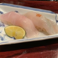 なんと!鉄板焼きで握り? 今が美味しい甘鯛と河豚の握りです。 シャリの固さが絶妙‼︎美味いなー ヒロキは万能料理人なんです。はい、みんなもっと褒めてください‼︎