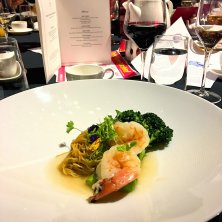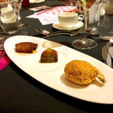 前菜 マッシュルームのマリネ、キャベツ、パンプキンのピューレの湯葉仕立てが 美味 (๑´ڡ`๑) あとは 和牛ビーフ & 蟹の爪