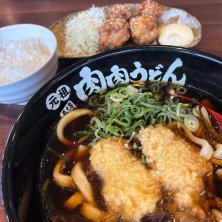 鹿児島で博多名物肉肉うどん 生姜多めで良い感じ😊 甘辛の唐揚げ美味しかった。