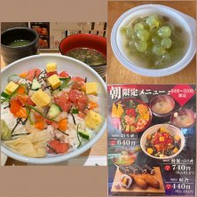 おはようございます🌈❤️🤙 今日は朝から予定が詰まっていて、お昼食べる時間無いかなぁと思って、駅蕎麦食べてこと歩いていたら、「あらっ❤️」いつもの駅中のお寿司屋さんが朝限定メニューやっているではありませんか〜 「食べるしかないでしょ!今日でしょ!」ってことでいただきました〜 写真とはちょい違うけど美味しかった☺️ 小さい頃デラウエア🍇をこういう贅沢な食べ方してみたかったんだよね〜💜オイコスの上にトッピング! うん👍満足💜