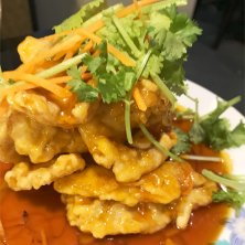 ハルビン酢豚。豚スライスを揚げてタレをかけただけのシンプル構成。 サクサクで美味しい!
