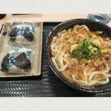 麻婆あんかけうどん大、おむすび(紅鮭、明太子)