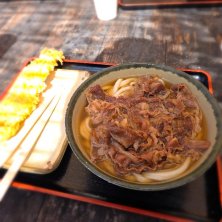 かけうどんとちくわ天(^^) 山の中にぽつんとある小さなお店。 木材屋さんが作った木の香りがする新しくてきれいなお店です。