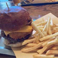 カロライナカーニバルバーガー》を注文しました。メニューによるとビーフパテ、BBQプルドポーク、チェダーチーズ、フライドマックチーズ、BBQピッドソースがバンズに挟まります。 パテは牛の赤身100%、重厚で肉肉しい味わい。その上にとろんとろんのフライドチーズと濃厚チェダーチーズが乗ります。これらを挟むバンズも重厚感があって肉と相性抜群。ソースは主張弱めで肉の旨味を引き立てます。このハンバーガーはビール相性抜群です。