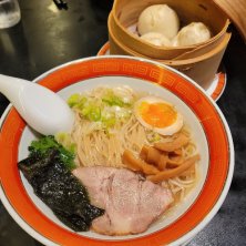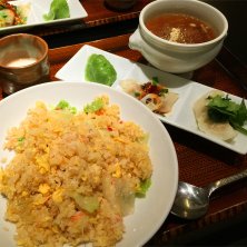 今日のランチ(^.^) 魚介類は2日間で堪能したので、ラーメン繋がりになりますが『チャーハン』とフカヒレスープ・餃子セットσ(^_^;)