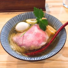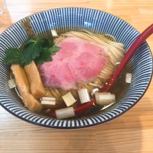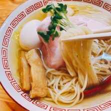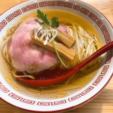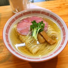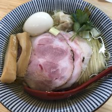 糖質制限生活5年目のダメなお昼ご飯 特級中華そば 松 白醤油 ワンタン、味付け卵入り 開店15分前から並んで二巡目で着席。 コンクリート打ちっぱなしの新しいおしゃれなお店。店内はジャズが流れ、愛想のいいご主人。 和やかな接客。店員さんも親切😊 ストレートの自家製麺はツルツルの舌触りが心地よくとっても美味しい。 白醤油は煮干しの出汁が香ってスッキリ。 レアチャーシューも柔らかくとろける。 美味しいお店でした😊