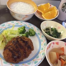 入院17日目 夕飯…… 編み物に夢中になっていて投稿忘れてました(^-^;A ハンバーグに見えますが…つくねの照り焼きです(笑) いまはシュシュを編んでいます(๑⃙⃘ˊ꒳ˋ๑⃙⃘))ニヒヒ♡ まだ決まり事が良く解らず間違えて何回も編み直しましたがやっとひと段落です! さてと…ねよ~〜 おやすみなさいーー。・*・:≡( 「ε:)ノ