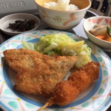 入院8日目 お昼ご飯 投稿忘れてました~(ノω・`。)あらまー... 老人には危険レベルな骨が沢山入ってた魚さまᗦ↞◃ こんにゃくのピリ辛炒めが辛く無かったのでカイエンペッパーかけたら…かけすぎて激辛になりました……(o_ _)o パタッ いままで4人部屋をひとりで使っていましたが今日可愛い女の子が入ってきましたよ〜✨
