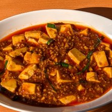 前菜(タコのサラダ)、グリーンピースの冷製スープ、茄子のピリ辛炒め、蟹と豆腐の煮込み、杏仁豆腐。 全体的に優しい感じの味付けです。 ご飯はおかわり自由。
