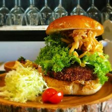 牛ほほ肉のメンチカツバーガー 谷中二鷹の土日限定 多すぎて食べきれないわい。