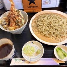 せいろ・ミニ天丼セットいただきました。 少し昼の時間過ぎてから行ったせいか、他に客はいなかった。 注文すると厨房からぱちぱちと天ぷらを揚げる音が そばはしっかり締められ、出汁も好みの味 美味しくいただけました。 天ぷらも、衣はサクサク甘辛のタレがよく合ってとても美味しかった。 ランチのこのセット、とてもコスパが良いと思います。 ⭐︎⭐︎⭐︎⭐︎ @1100 そばが若干緑ががっているように見えたのは気のせいかな?
