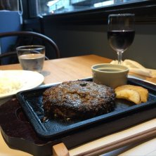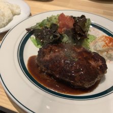 ハンバーグプレート チェダーチーズ ダブル! ソースなしでも肉の旨みでご飯ぺろっといける一品。 さらにオニオンソースが店員さんから貰えるのですが、そのオニオンソースもまた絶品。甘いソースがハンバーグとよく合います。 最近仕事終わりに見つけたお店なのですが、今はお気に入りのお店です