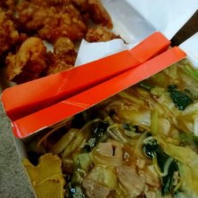 フライ麺のチャーシュートッピングをお持ち帰りで~😃 ここのチャーシュー美味しい👍 カラシたっぷり塗~り塗~り。