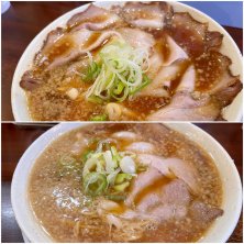 本日のラーメン紀行は、札幌から1時間半ほど離れた旭川市にある「まよさわ」です 「ラーメン・肉増し」は醤油味のスープに中細ストレート麺の組み合わせ トッピングのチャーシューは薄切りの大判がたっぷり とても優しい味のラーメン 「生姜ラーメン」は醤油味のスープをベースに、しょうがの爽やかな味と香りがいい感じです どちらのラーメンにも背脂がトッピングされていますが、最後まで優しさが失われることのないラーメンでした