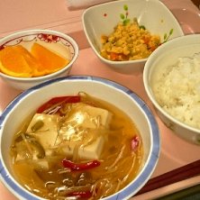 夕飯~ ・白ごはん ・豆腐の餡掛け ・たまごとミックスベジタブル ・みかん こんばんは~(^-^)/ 17時~の説明は、まだ来ずに先にご飯に~ 嫁は待ちぼうけで、ウトウト~
