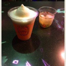 桜イベント実施中の『品川アクアパーク』にて🌸 *一番搾りフローズン(カルピスフレーバー) *SAKURAの舞(杏仁豆腐やフルーツ入りのカクテル) ドリンクが置かれると、カウンターに綺麗なライトが…✨🍸