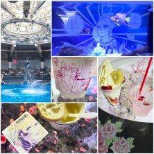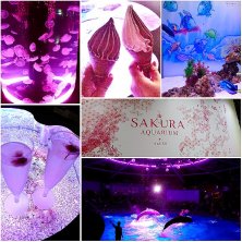 SAKURA AQUARIUM♪ 仕事帰りに夜の水族館へ寄り道しました さくら澪で乾杯! クレミアソフトのチョコも(≧▽≦) 観るお花見 イルカショーも桜の映像とともに❤️ 綺麗で癒された~!